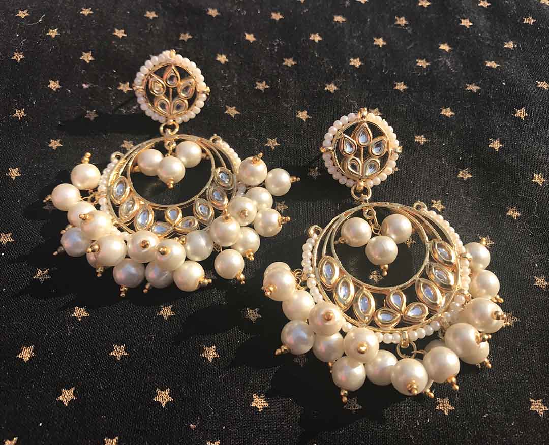 Kundan Chaandbaali Earrings with Fine White Cloud Pearls