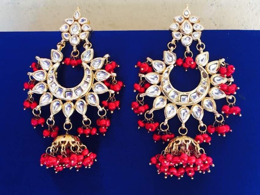 Kundan Chaandbaali with Small Jhumki Red Earrings