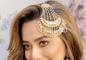 Kundan Passa/Jhumar with White Pearls can be customised in any colour