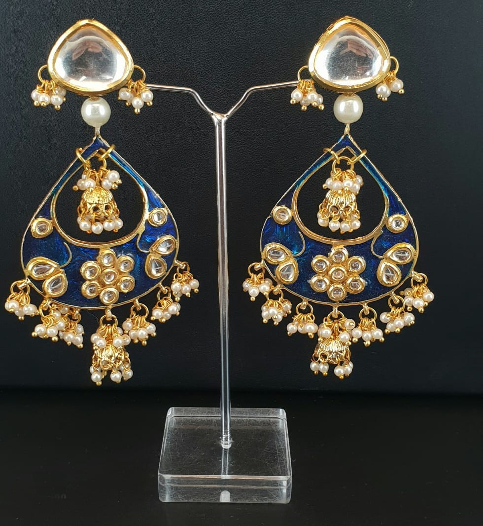 Kundan Top with Blue Meenakari Earrings