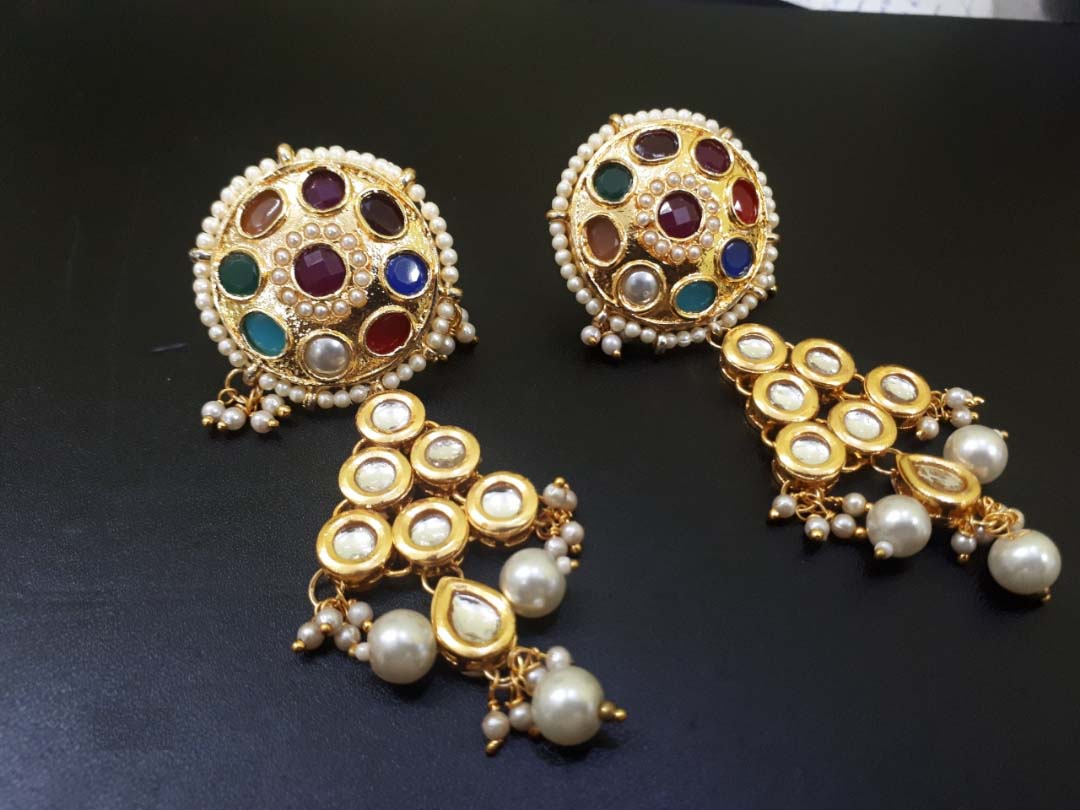 Navratan Tops with Round Kundan Beneath & Fine Quality White Pearls
